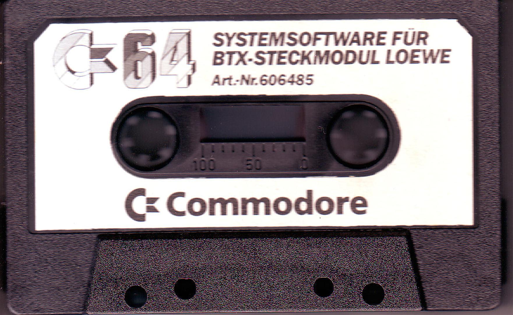 Das BTX Steckmodul 606485 für den C64/C128 von Commodore wurde speziell für Loewe Fernseher entwickelt. Es kam 1984 auf den Markt und wurde für 349,- DM verkauft.