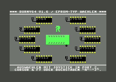 Der Eprom-Brenner Burny64 programmiert alle Eproms der 27-Serie ab 8 Kbyte, die mit einer Versorgungsspannung arbeiten und 28 Pins besitzen, sowie deren entsprechende A-Typen, mit drei unterschiedlichen Brennalgorithmen, von denen einer frei vom Benutzer definierbar ist.