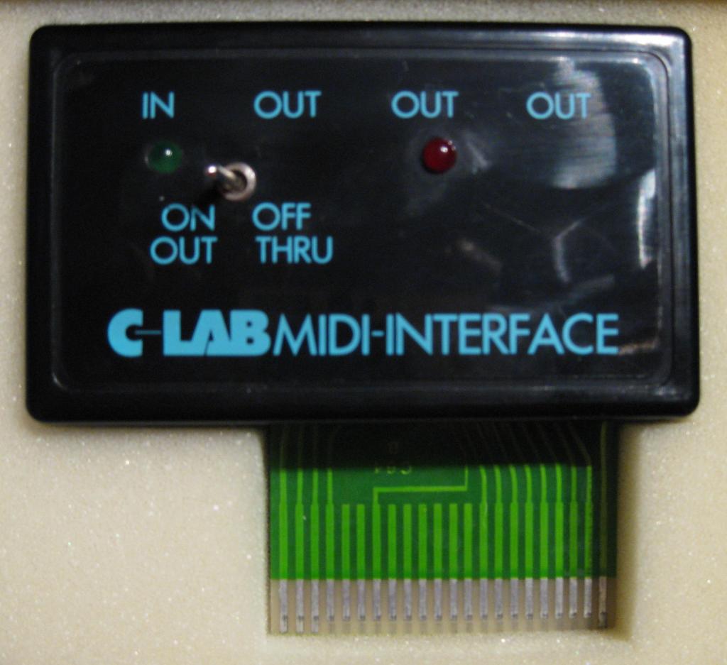 Das Midi Interface von C-Lab für den Commodore C64/C128 besitzt drei Midi-Out und einen Midi-In Anschluß. Über einen Schalter kann das Modul deaktiviert und Midi auf Thru gesetzt werden. Zwei LED’s zeigen den Betriebszustand an. Das Interface ist zu jeder MIDI-Software kompatibel.