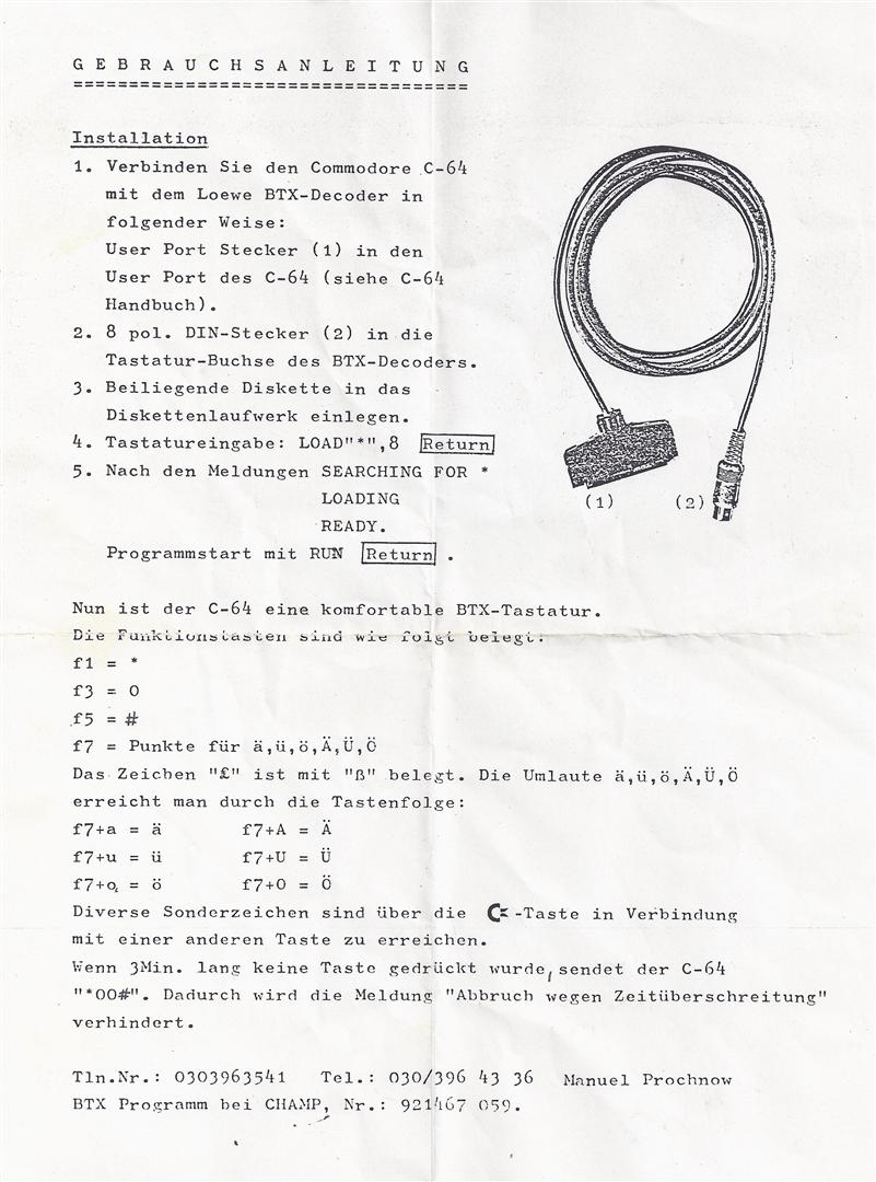 Der CEPT BTX Decoder DBT 01 von Loewe (Artikel-Nr. 63405-10) kann über das optionale Userportkabel auch zusammen mit dem Commodore C64/C128 betrieben werden.
