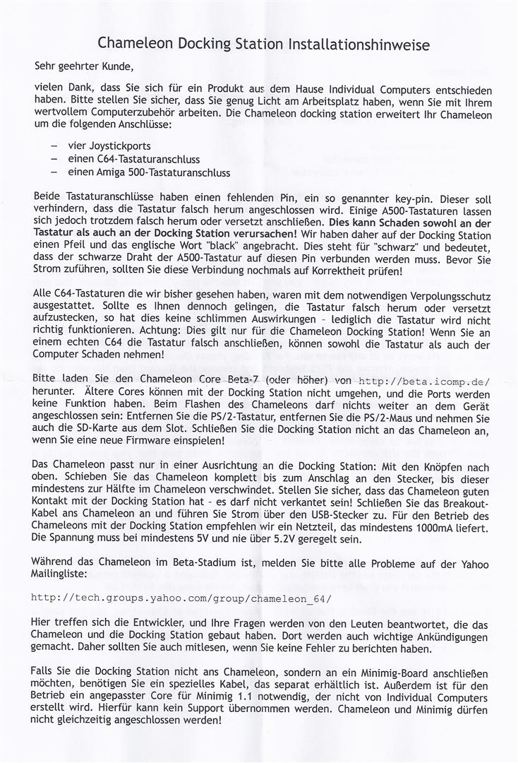 Die Docking Station für das Chameleon bietet dem Modul einen festen Halt auf jedem Schreibtisch. Die Station besitzt 4 Joystickports und jeweils einen Anschluß für eine C64 oder Amiga 500 Tastatur. Somit kann das Chameleon jetzt im Standalone-Modus noch sinnvoller genutzt werden.