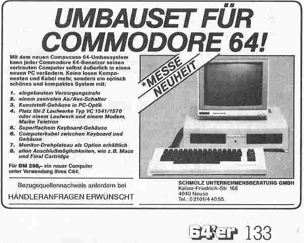 Im Jahr 1987 brachte die Firma Schmolz Unternehmensberatung GmbH aus Neuss das Compucase 64d Gehäuse für den Commodore 64 für einen Preis von 298,- DM in der Grundkonfiguration auf den Markt. Die Tastatur findet in einem sehr stabilen Gehäuse platz und wird mit einem Spiralkabel und einem Adapter mit dem C64 Board verbunden. Das Desktopgehäuse bietet Platz für zwei 1541 oder 1570 Floppylaufwerke und das C64 Mainboard. Das Gehäuse ist sehr instabil und nur aus dünnem Kunststoff gefertigt. Der Boden ist aus Metal. Auf der Rückseite sind die Stromanschlüsse für zwei 1541 Floppies und den C64 Stromanschluss zusammengeführt und lassen sich somit mit nur einem Schalter ein- und ausschalten. Auf der Oberseite befindet sich ein Loch. Hier drunter befindet sich ein Stahlrohr zur sicheren Aufnahme eines optionalen Monitorhalters. An der Vorderseite ist ein Resetschalter, die Betriebs-LED für den C64 sowie die Betriebs-LEDs für die beiden 1541 verbaut.