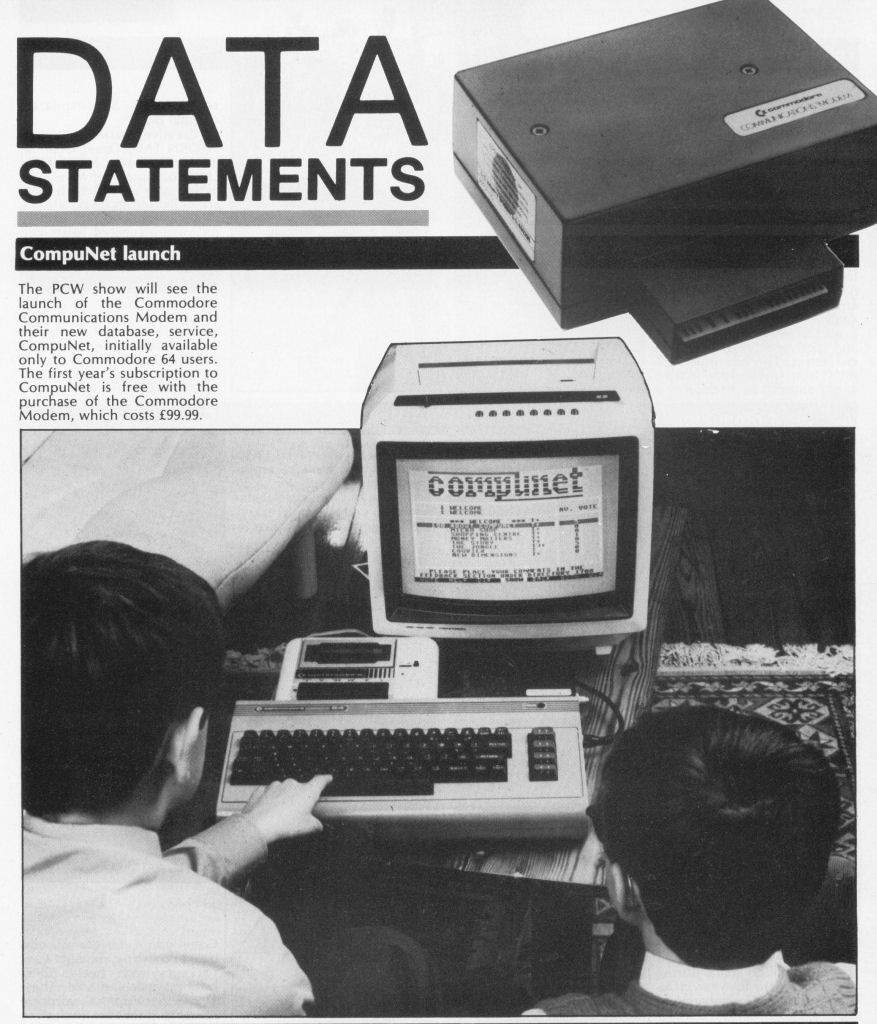 Das Communication’s Modem für den C64/C128 diente dem Zugang zum Compunet Netzwerk. Modem ist eine Abkürzung für Modulator und DEModulator. Es wird als interne Steckkarte, externes Geräte oder Steckmodul (C64/128) am Computer genutzt und dient der digitalen Datenfernübertragung (kurz: DFÜ). Also der Übertragung von Daten zum oder vom Computer über das Telefonleitungssystem (analog, ISDN, DSL) und Computernetzwerke (z.B. Internet) zu anderen Computersystemen. Quelle : Wikipedia