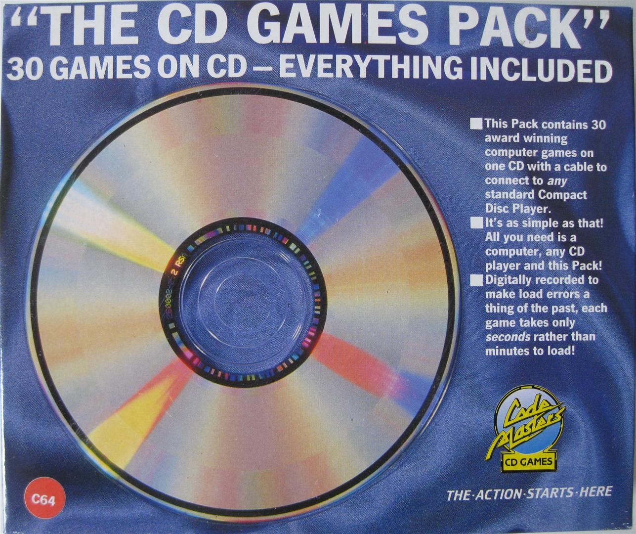 Das (The) CD Games Pack von Codemasters für den Commodore C64/C128 kam Anfang der 90er Jahre auf den Markt und beinhaltet 30 Spiele. Das Set besteht aus einer CD, einem Handbuch, sowie einem Datenadapter für den Joystickport. Dieser kann über einen 3,5 oder mit einem Adapter über einen 6,5 Klinkenstecker mit einem CD-Player verbunden werden. Die „CD Loader Software“ muß auch für erneute Ladevorgänge von CD nur einmal geladen werden. Mit „Restore“ kann das Spiel einfach beendet werden. Leider setzte sich die Idee von Codemasters nicht durch und es wurden nur wenige Exemplare verkauft.