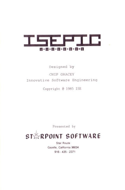 ISEPIC Cartridge (1984)(DB Chip Gracey/Starpoint Software)