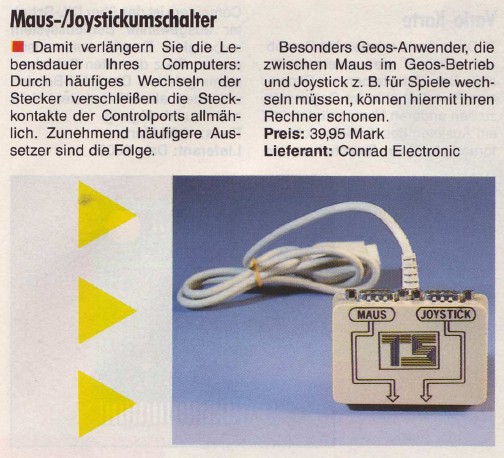 Der Joystick- und Mouseumschalter von Datel schaltet automatisch bei einem Feuerknopf- oder Mouseklick auf das jeweilige Gerät um.