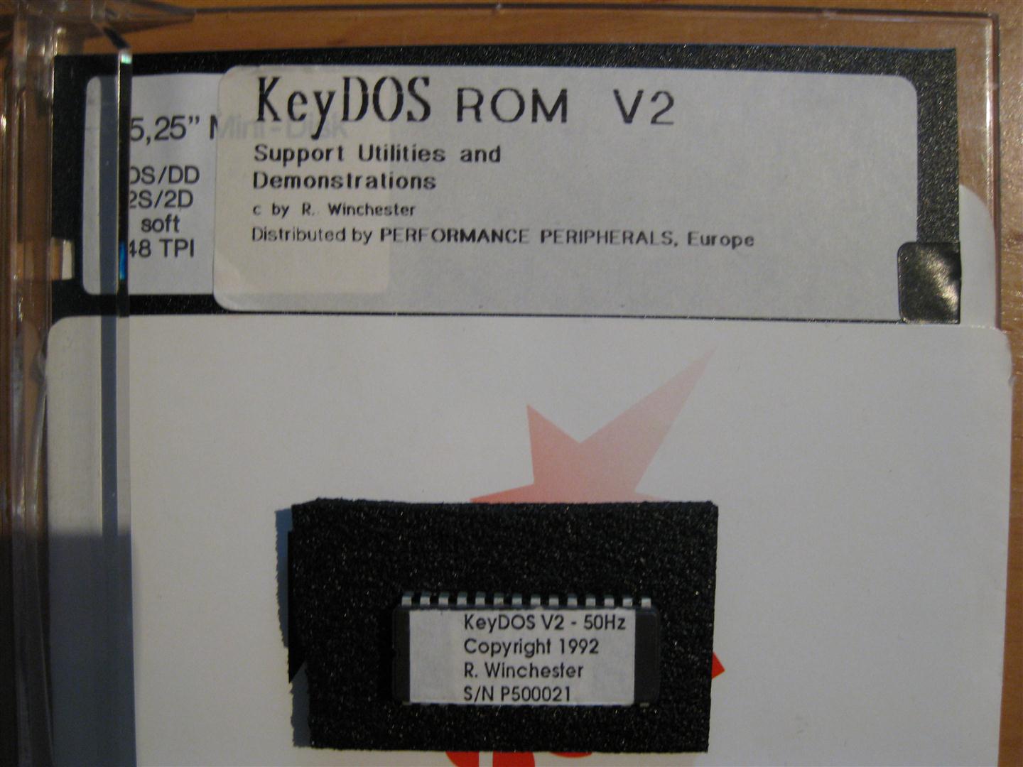 Das KeyDOS Rom V2 von R.Winchester wird einfach in den leeren ROM-Sockel eines C128/C128D oder einer REU gesteckt. Nach dem Einschalten stehen rund 20 neue Funktionstastenbelegungen sowie neue Funktionen zur Verfügung. Das KeyDos ROM ist zu allen Floppy-Speedern kompatibel.