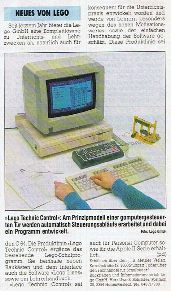 Das Lego Computer Interface A 70455 kam 1987 auf den Markt. Es wurde von Lego ausschließlich für den Schulunterricht entwickelt. Mit dem Interface lassen sich aufwendige Schaltungen programmieren. So können Motoren, Lichtschranken und Sensoren angesteuert werden. Auf dem C64/C128 kommt das Programm LEGO-Lines zum Einsatz. Das Interface konnte mit dem Lego Technik Bausatz 1090 und Software für 886,- DM erstanden werden.