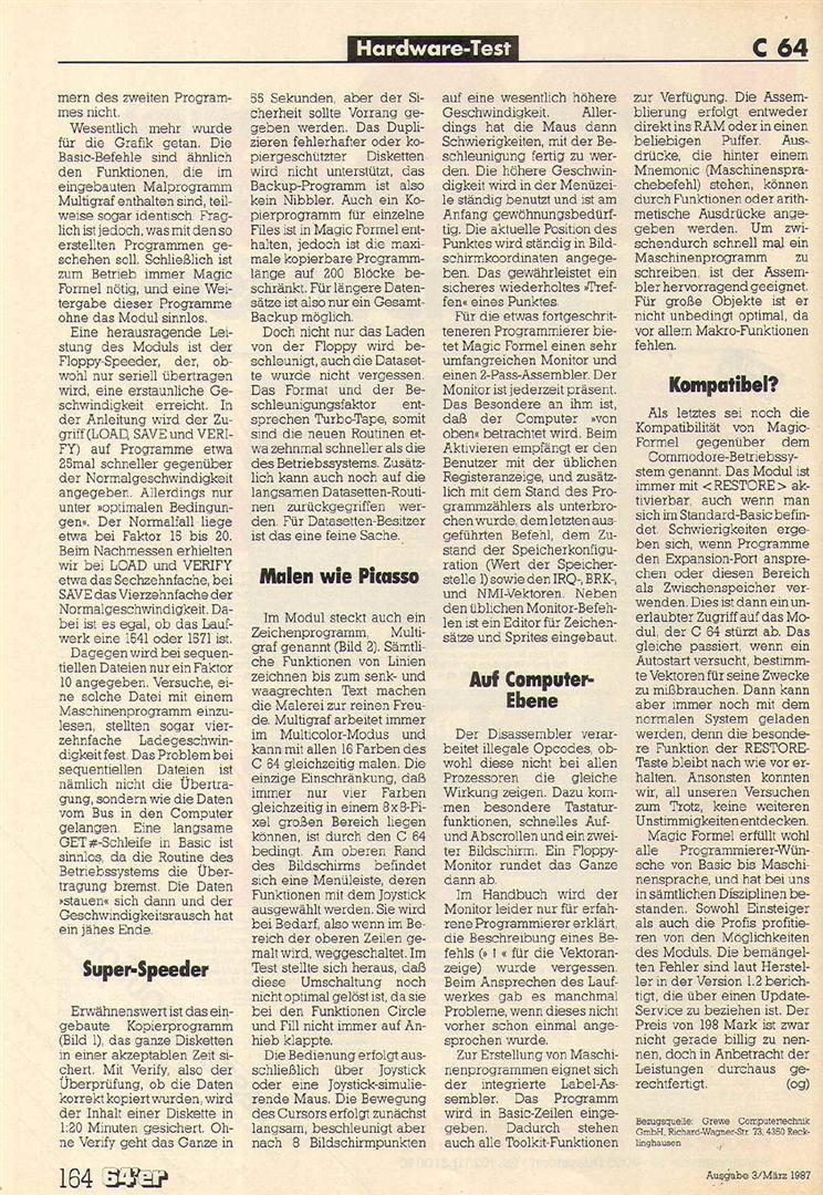 Die Magic Formel ist ein Steckmodul für den C64, das einen Schnell-Lader mit dem Faktor 11, einen Freezer, eine Hardcopyroutine, einen Maschinensprachemonitor, sowie ein Malprogramm, eine Textverarbeitung, Kopier-Tools, eine 80-Zeichen-Funktion, 50 neue BASIC- und Floppy-DOS-Erweiterungen, sowie eine Centronics-Unterstützung besitzt. Es wurde in Deutschland von der Firma Info-Technik-Müller in Recklinghausen vertrieben. Die letzte bekannte Version ist Magic Formel 2.0. Quelle: Wikipedia