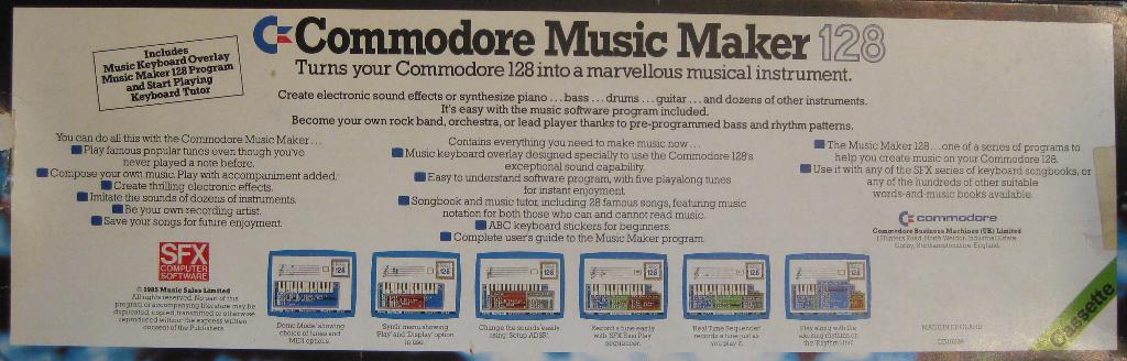 Für den Commodore 64 war das Music Maker Keyboard bereits ein großer Erfolg. Ab 1986 gab es das Keyboard auch für den Commodore 128. Für den C128 wurde die Music Maker 128 Software ins Leben gerufen.