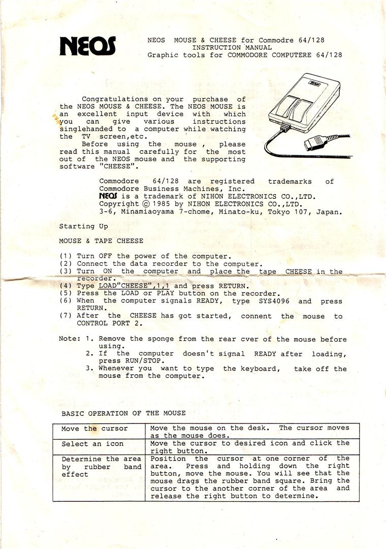 Die Mouse Cheese Maus von Neos ist voll kompatibel zu Geos und wurde unter anderen mit einem Grafikprogramm ausgeliefert. Die Maus wurde auch in der limitierten Commodore C64C Edition Connoisseur’s Collection verwendet.