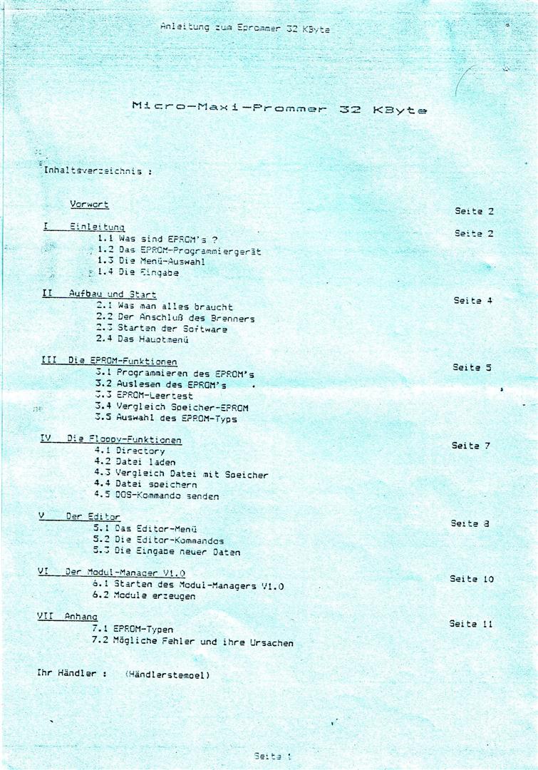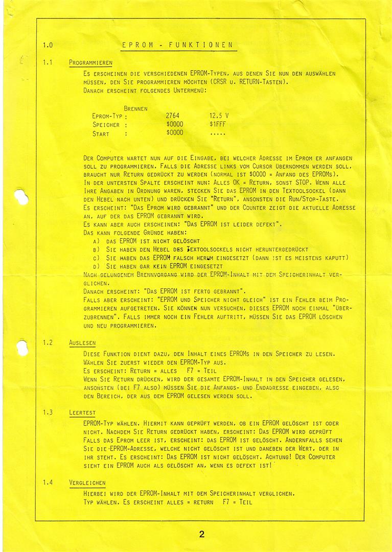 Mit dem Micro Maxi Prommer 2 oder auch Goliath Eprommer von REX-Datentechnik lassen sich die Eprom-Typen der 27er Reihe (2716-27256) programmieren. Der Eprommer wurde auf der selben Platine wie der Goliath Eprommer hergestellt. Die Rex-Nr. 9555 ist nur auf dem Gehäusedeckel zu finden, auf der Rückseite der Platine findet sich die richtige Nummer (9655). Rex Katalogpreis 198,- DM.