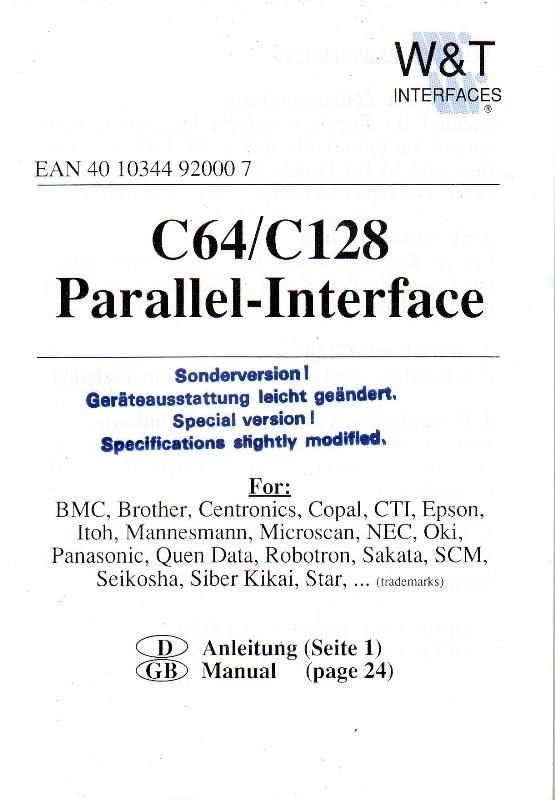 Parallel-Interface Sonderversion (W&T Interfaces)