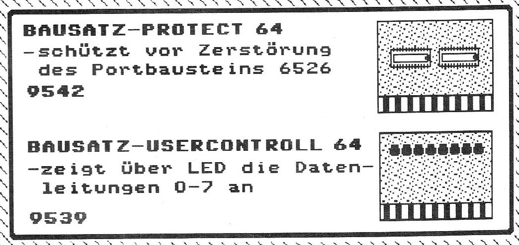 Das Protect 64 Modul 9542 von Rex Datentechnik dient als Druckertreiber und Portbausteinschutz für alle C64 und C128. Die Zerstörung des 6526 durch einen Kurzschluß ist ausgeschlossen. Weiterhin wurde ein Resetschalter verbaut.