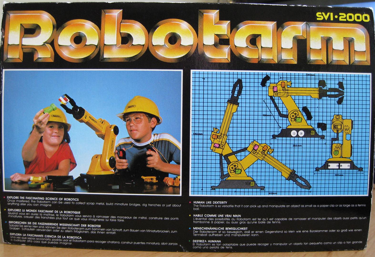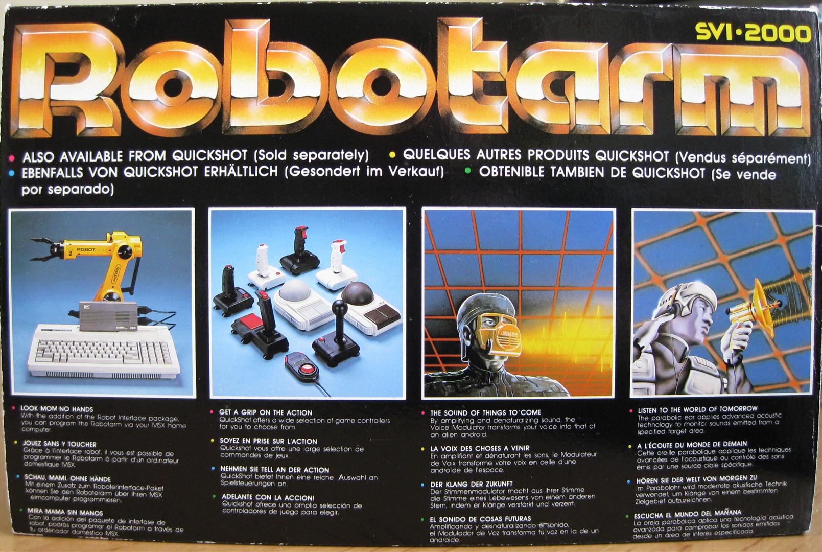 Der Robotorarm SVI-2000 von Quickshot besitzt fünf Motoren. Über diese Motoren kann der Roboterarm über fünf Achsen bewegt werden. Betrieben wird das Gerät über vier Batterien oder ein Netzteil. Gesteuert wird der Roboterarm über zwei Standart-C64-Joysticks oder über ein am C64/C128 angeschlossenes Steuermodul. Ausgeliefert wurde das Gerät mit insgesamt drei Aufsätzen. Einer Schaufel, einem Magneten und einem Greifer. Im Arm ist zusätzlich eine Leuchte verbaut. Der Robotorarm wurde anfangs für einen Preis von ca. 200,- DM verkauft. Restbestände gab es Anfang der 90er Jahre bei Conrad Elektronik für knapp 50,- DM.