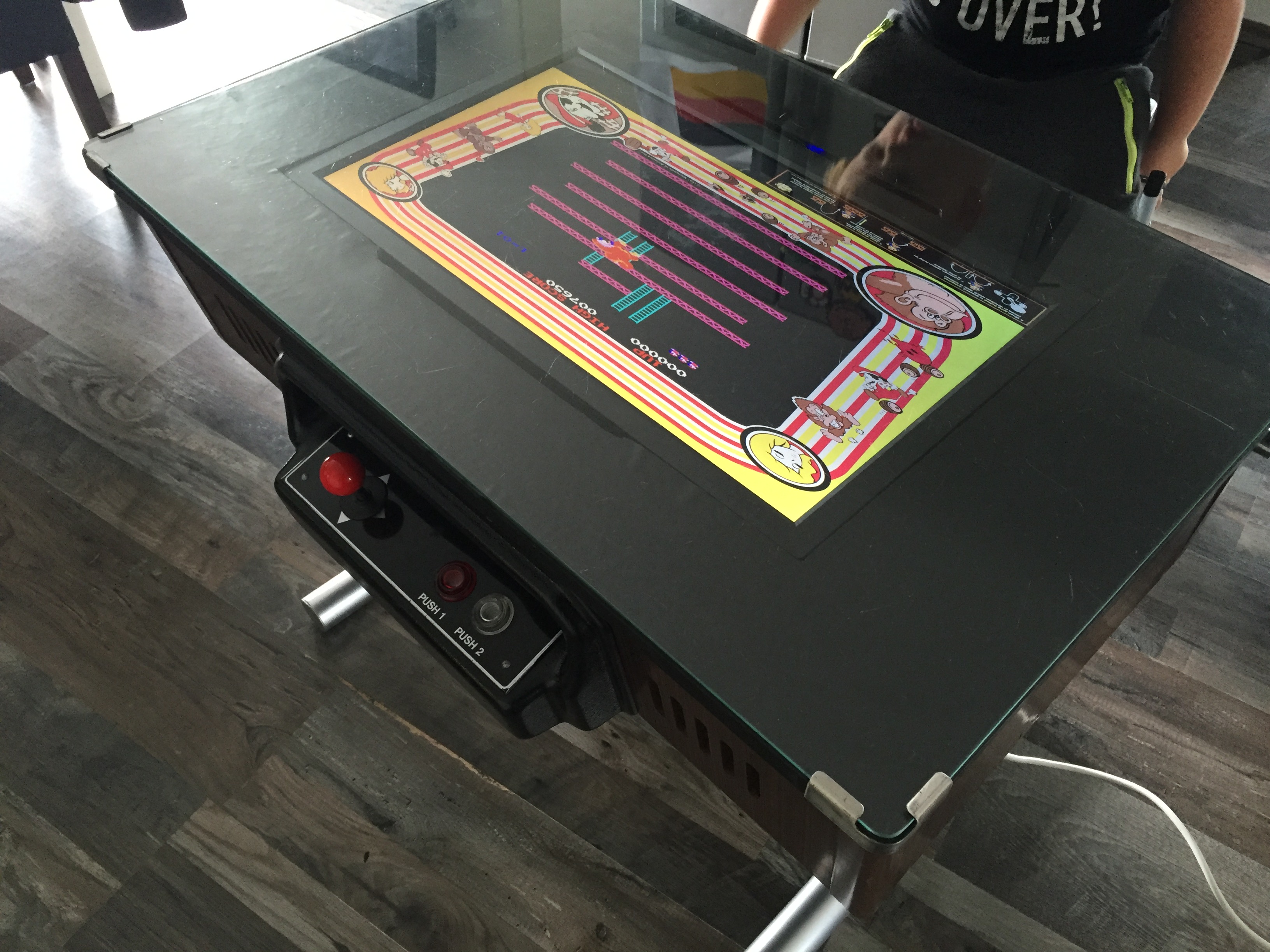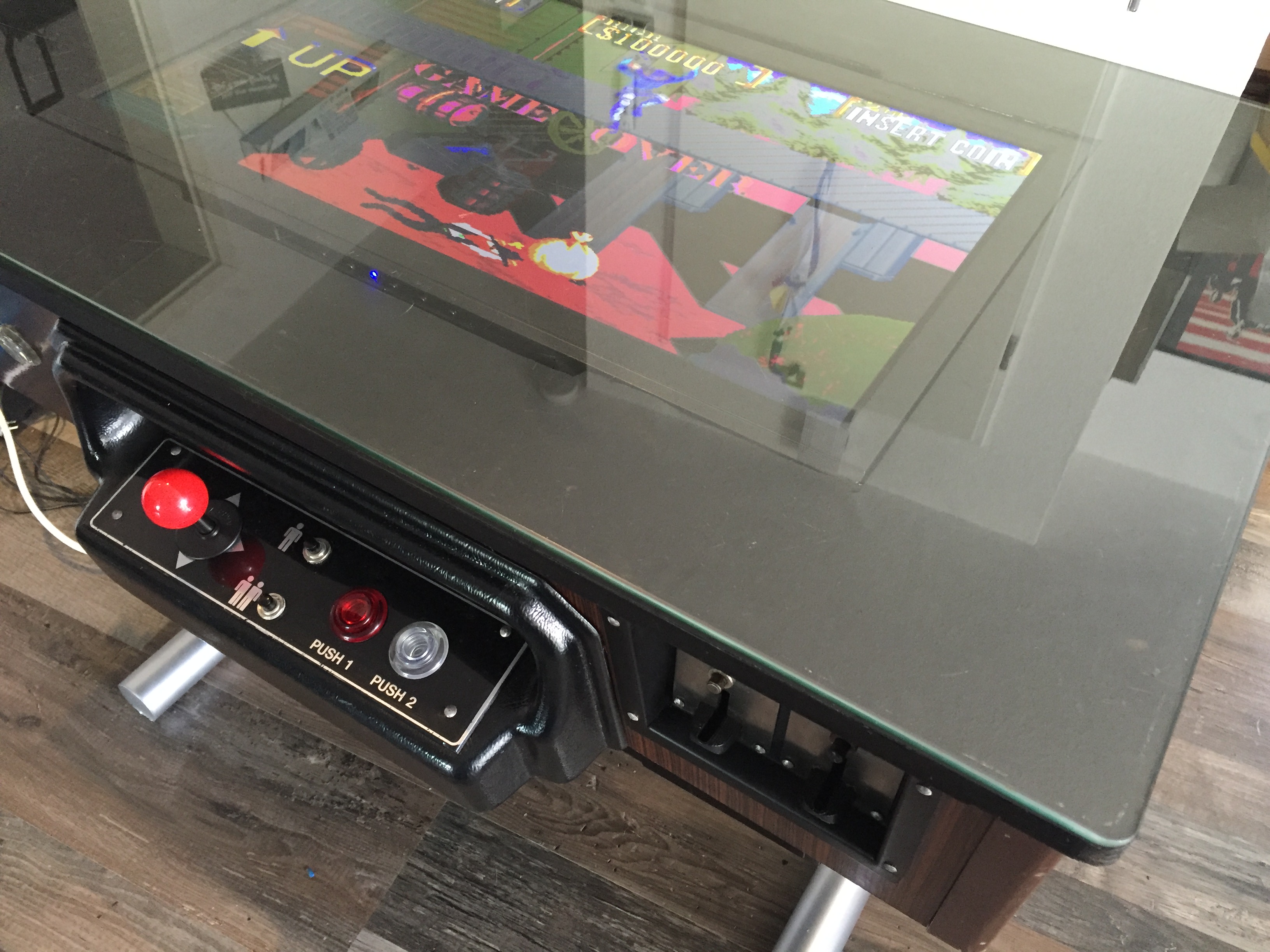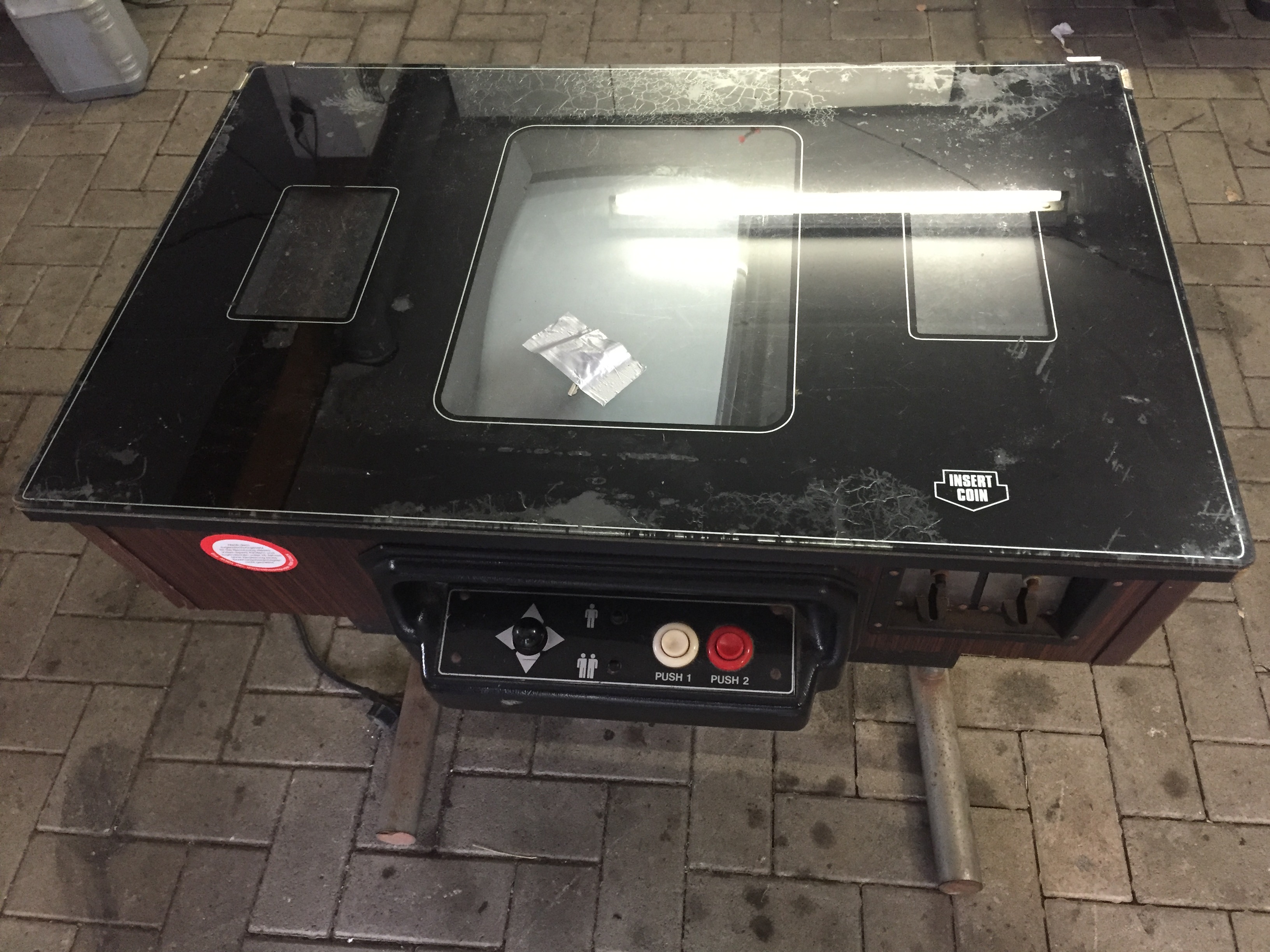 Es war eher ein Zufall, als ich mir vor einiger Zeit einen Arcade Table gekauft habe. Auf dem Gerät war das Spiel Donkey Kong. Leider war der Monitor defekt und das Gerät insgesamt in einem schlechten Zustand. Bei der Restauration war mir wichtig, dass der 80er Jahre Nussbaum-Look erhalten bleibt. Die Münzprüfer mussten unbedingt erhalten bleiben und sollten auch weiterhin DM annehmen. Die Joysticks und Knöpfe musste ich erneuern. Auch den Röhrenmonitor habe ich durch einen 24″ Monitor ersetzt. Im inneren werkelt nun der Arcade Emulator M.A.M.E.