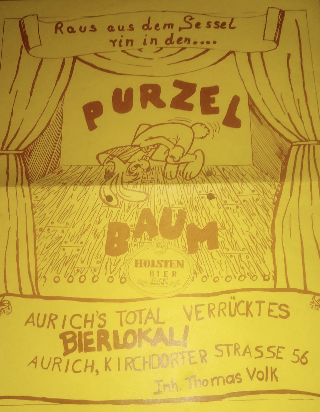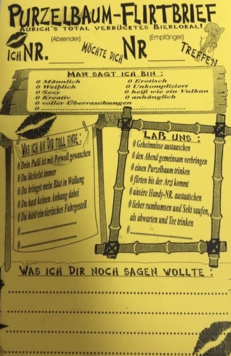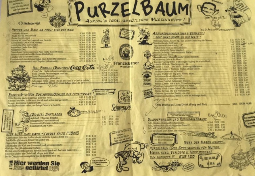 Das Purzelbaum galt lange Zeit als die total ausgeflippte Kneipe. Die Singlepartys waren legendär. Auf dem Gebäude gab es Strahler mit denen der Nachthimmel erleuchtet wurde.