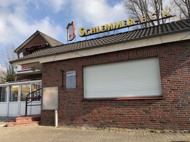 Diese Imbissbetriebe un Lokale gibt es heute nicht mehr: Ambassador, Biersalon, Grillstation, Holzfäller, Klönsnack, Marktschänke, Ossi Shop, Purzelbaum, Schlemmer-Eck, Stadtgrill, Störtebeker, Tanneck, Zur grünen Tanne, Zvonko. In der Grillstation stand lange Zeit der Arcade Automat Mission Elevator.