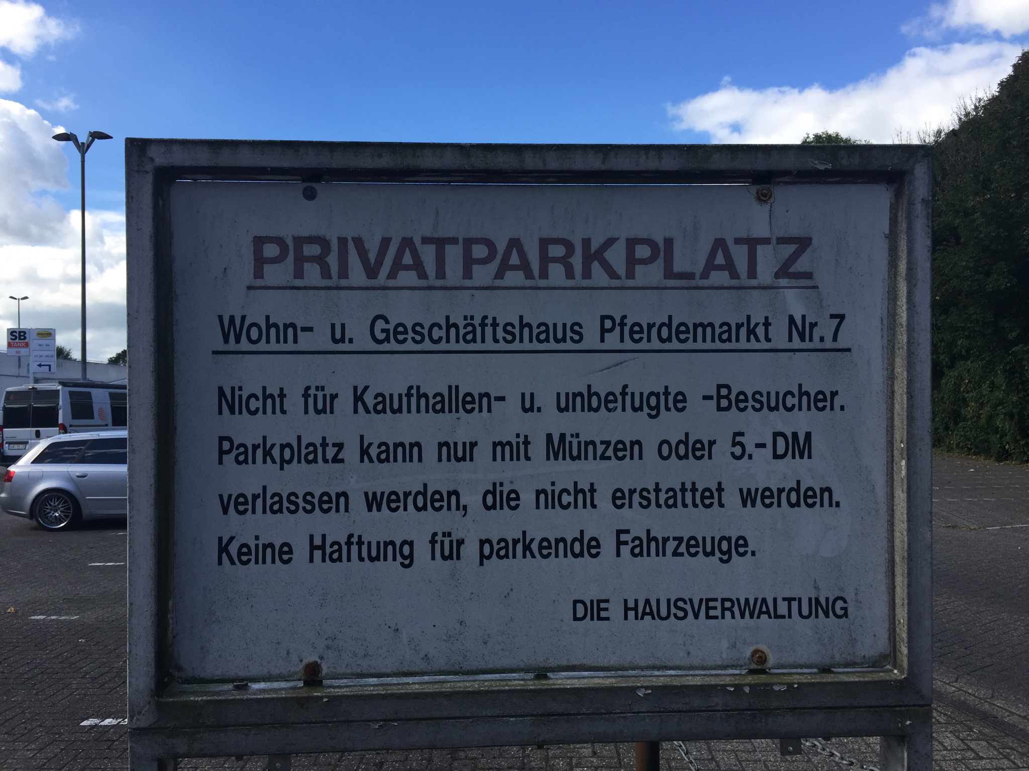 Das Schild zum Kaufhalle Parkplatz gibt es heute (2023) noch.