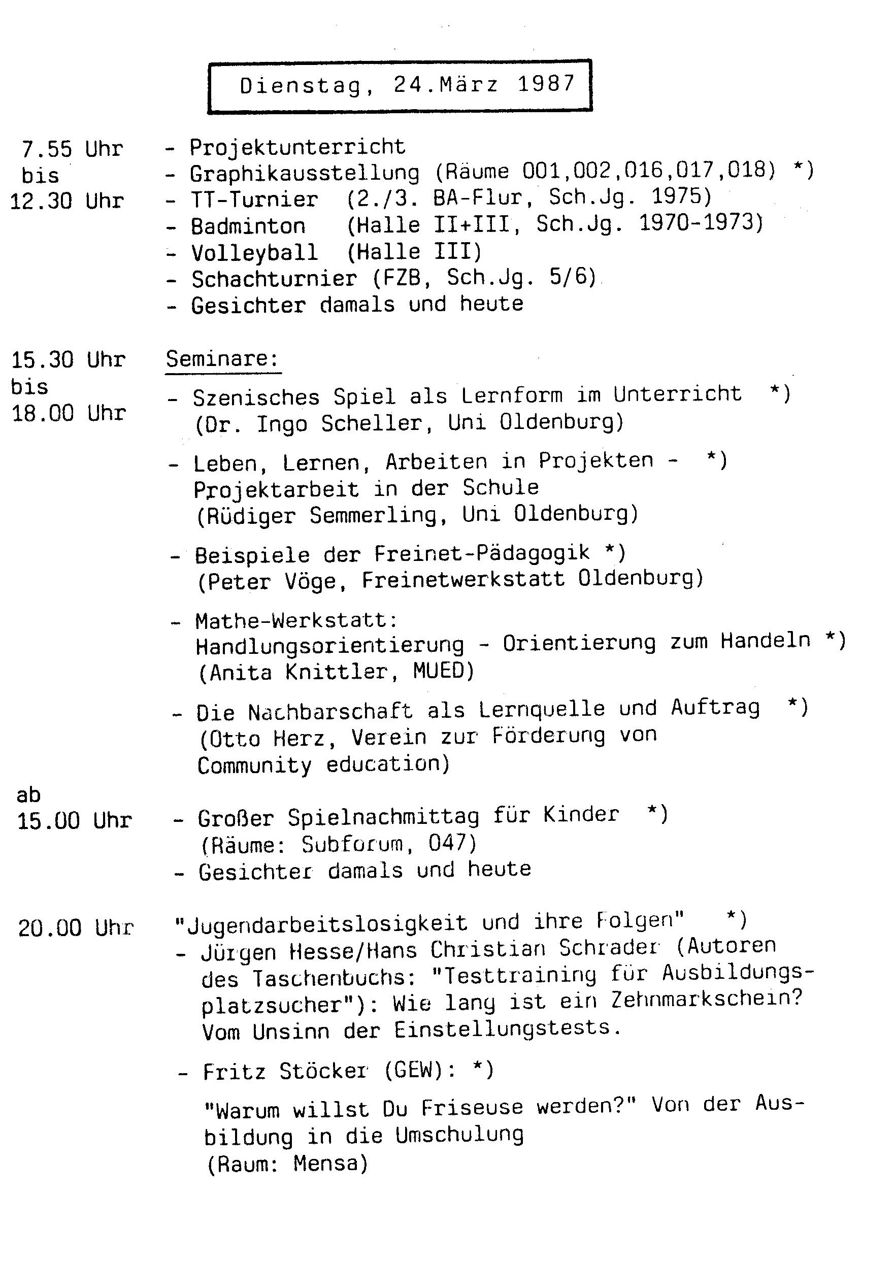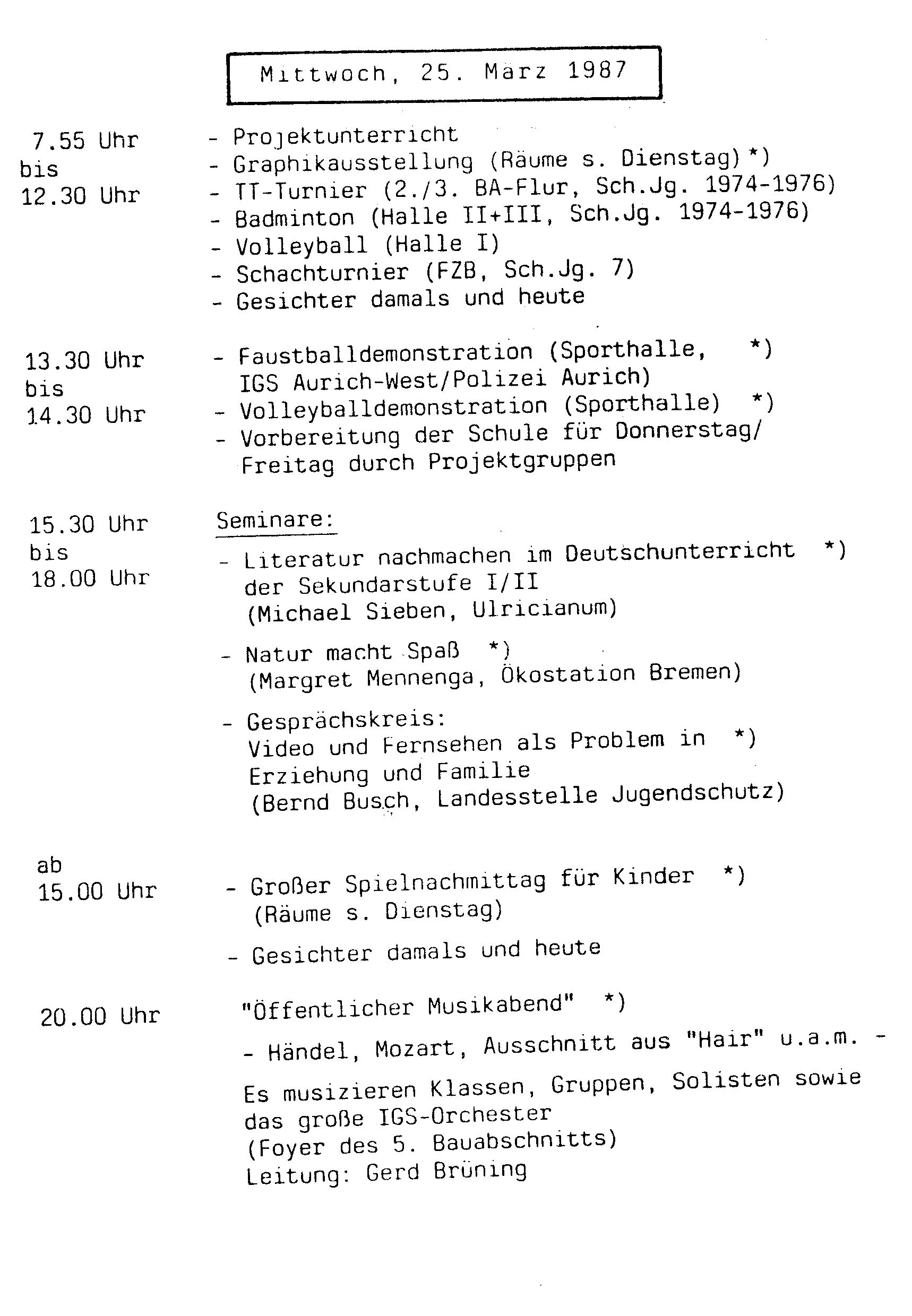 „Eine lebendige Schule“ (23.03.-27.03.1987)