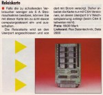 Die RAM Floppy Rex 9680 kann mit 256K Ramriegeln bestückt werden. Gespeist wird die Steckkarte über eine 9V Batterie. Die Karte wird mit der Geräte-ID 7 angesprochen. Die Karte kann deaktiviert werden und besitzt einen Resettaster. Katalogpreis Rex 159,- DM.