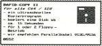 Rapid Copy 9650 V 1.0 ist ein Kopierprogramm von Rex Datentechnik. Das Programm kopiert Disketten sehr schnell mit einem oder mit zwei Laufwerken ab ca. 15 Sekunden. Das Modul ist abschaltbar und hat einen Resettaster.
