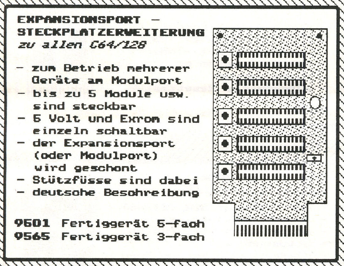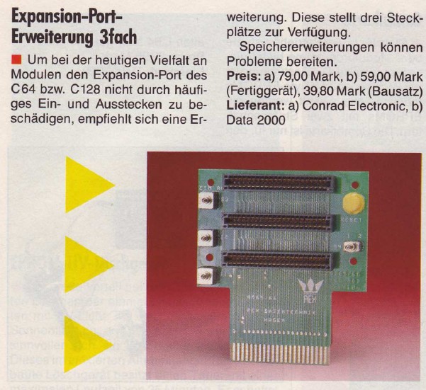 Die Rex Datentechnik Userport-Erweiterung 9530/9531 bietet zwei weitere Userport-Steckplätze und einen Resettaster. Katalogpreis Rex Datentechnik 33,95 DM.