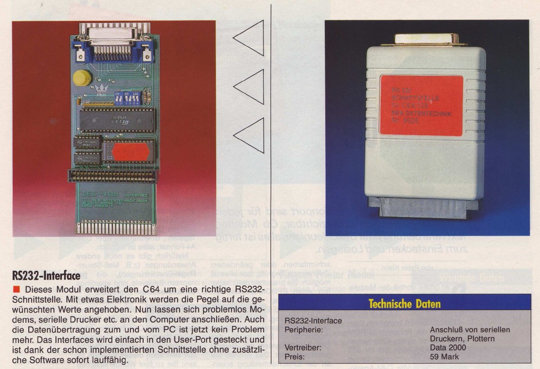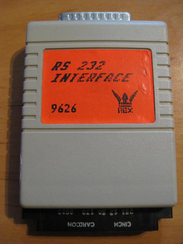 Das RS232 Interface 9626 von Rex Datentechnik bietet eine 25 polige Schnittstelle zum Anschluß von Druckern, Modems, Akkustikkopplern und anderen Steuerungen. RS-232 – heute als EIA-232 bezeichnet – ist ein Standard für eine serielle Schnittstelle, die in den frühen 60er Jahren von einem US-amerikanischen Standardisierungskommitee eingeführt wurde. Diese Schnittstelle wird vor allem für Modems und Akustikkoppler, aber auch für manche Drucker und andere Geräte verwendet. Der VC-20, der C64 und der C128 bieten eine solche Schnittstelle über den Userport an (Signal-Belegung siehe dort), wobei allerdings die Pegel durch eine externe Schaltung angepasst werden müssen. Quelle: Wikipedia