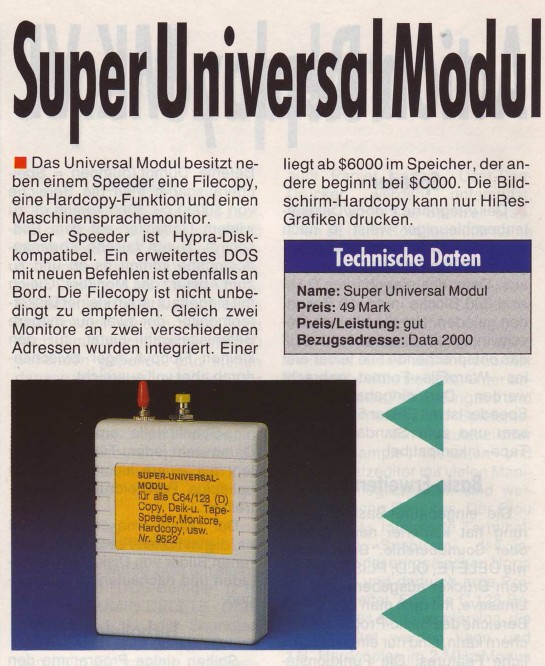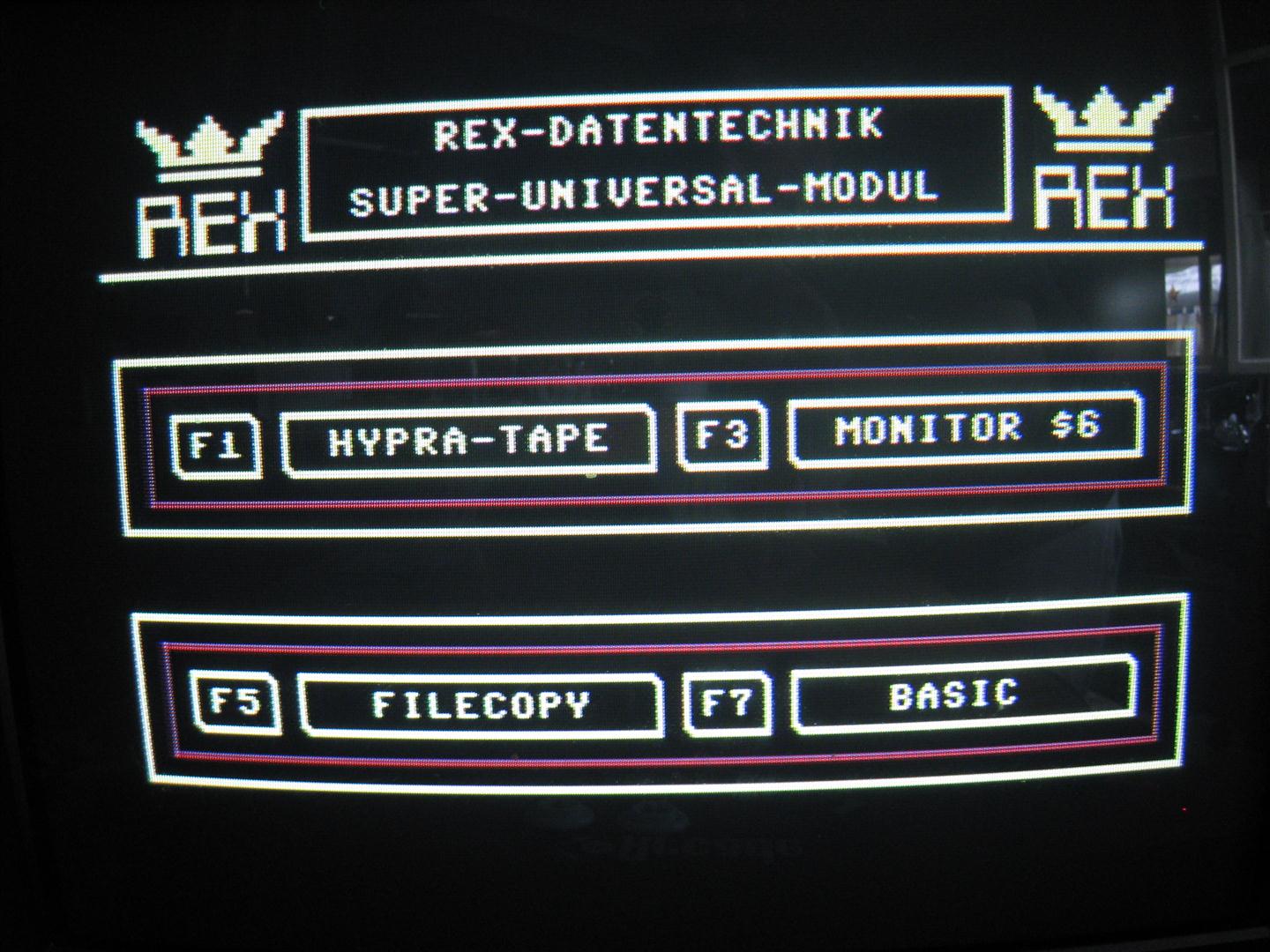 Das Super Universal Modul 9522 von Rex Datentechnik enthält die Funktionen Hypra-Tape, Monitor, Filecopy und Basic. In der Basic-Erweiterung stehen belegte F-Tasten zur Verfügung.
