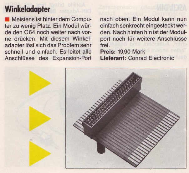 Der Winkeladapter 9575 von Rex Datentechnik dreht Module und Epromkarten um 90 Grad. Katalogpreis Rex Datentechnik 17,95 DM.