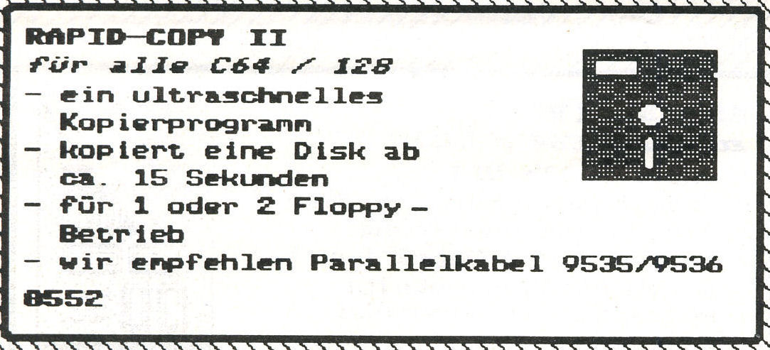 Das Rapid Copy 2 8552 von Rex Datentechnik kopiert eine Diskette in ca. 15 Sekunden. Es unterstützt den Betrieb von zwei Floppys.