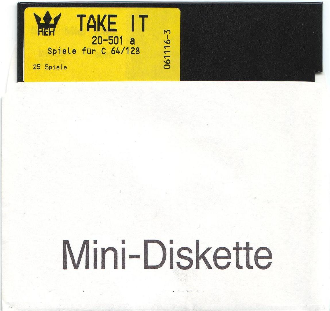 Take It von Rex Datentechnik ist eine Spielesammlung von insgesamt 25 Spielen für den Commodore 64/128 auf Floppydisk.