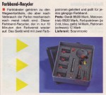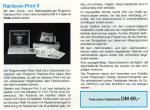 Mit Colourprinter lassen sich farbige Bilder mit einem s/w Drucker drucken. Ein Set aus drei bunten Farbbändern und eine leistungsfähige Software machen dieses möglich. Colourprinter kann Bilder von verschiedenen Malprogrammen laden und sie in seinem 640×400 Punkte großen Grafikspeicher beliebig plazieren. Colourprinter druckt auf Wunsch doppelt so groß. Der Colourprinter wurde für die Epson Drucker RX/FX, LX-400, 800, 850, LQ 550 sowie Star Drucker NL/NG-10(C), LC-10(C), LC-20 entwickelt. VK-Preis von 98,- DM bis 158,- DM