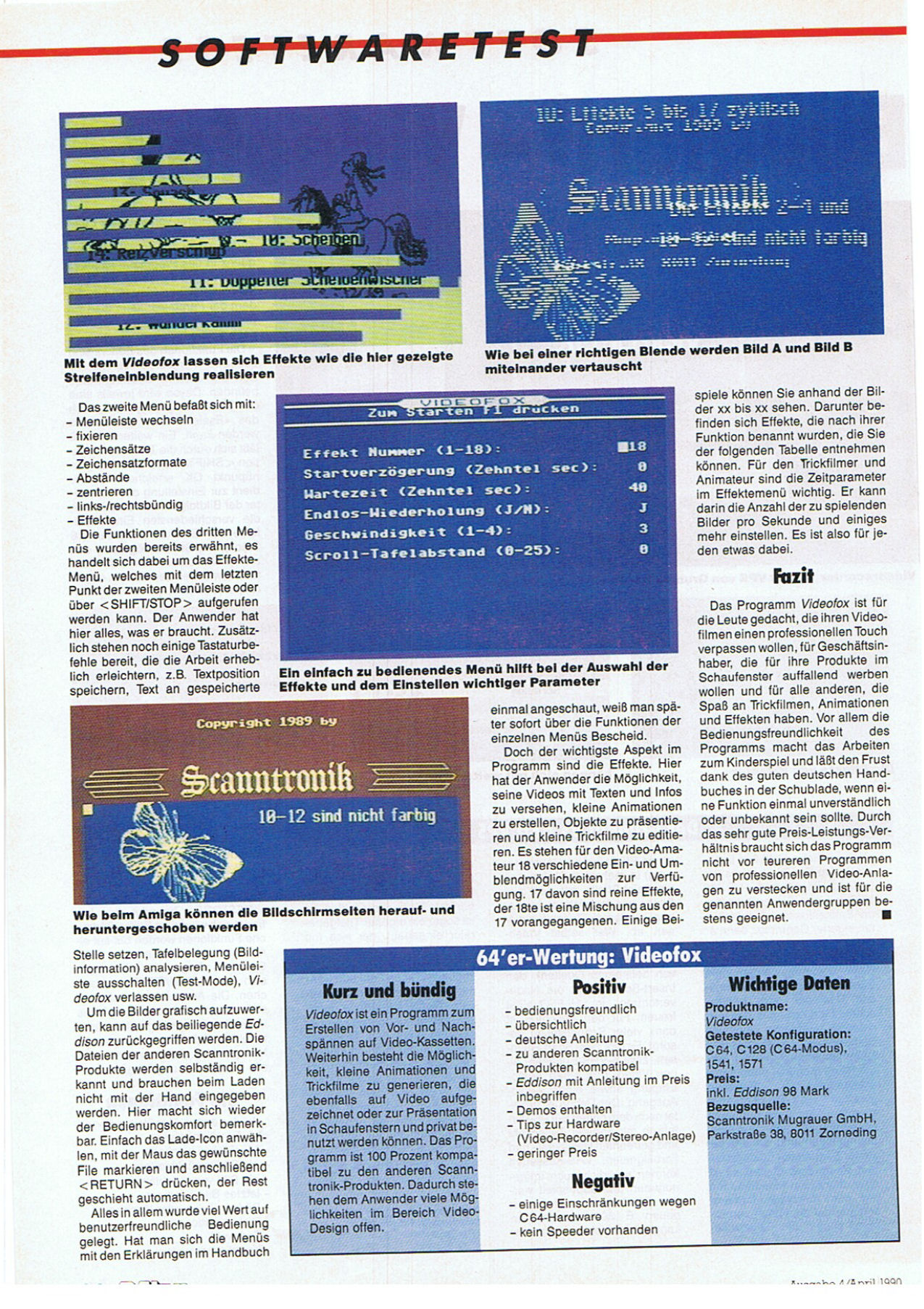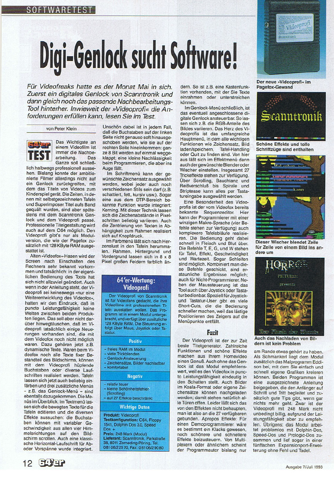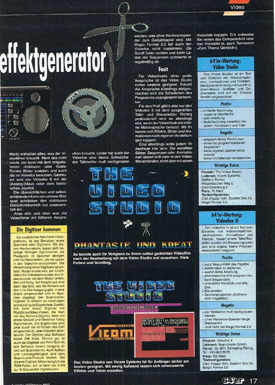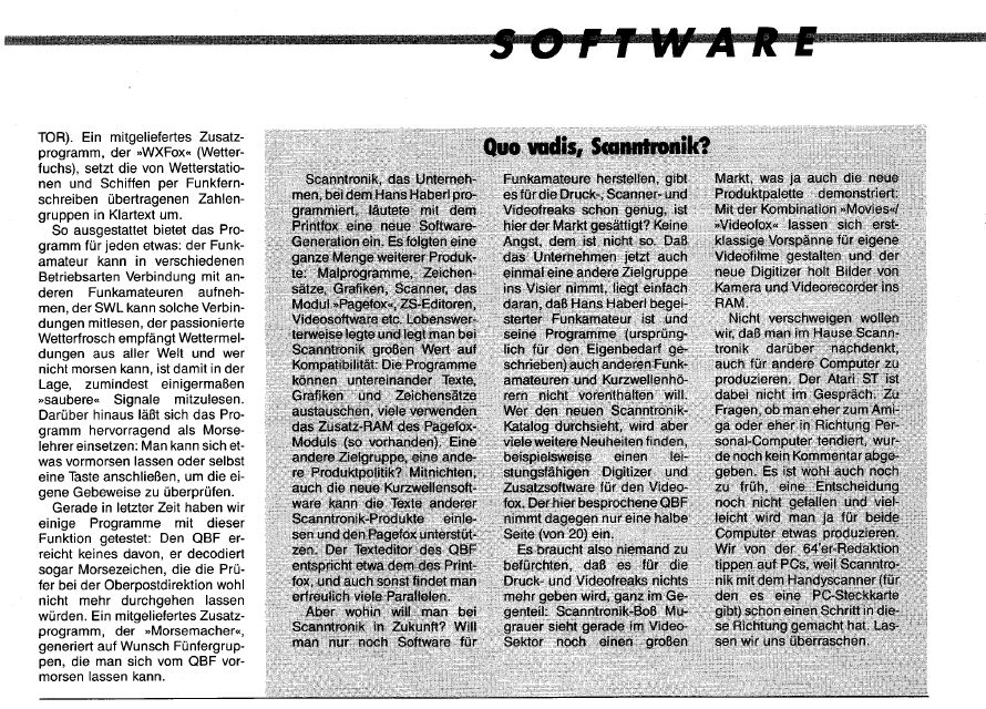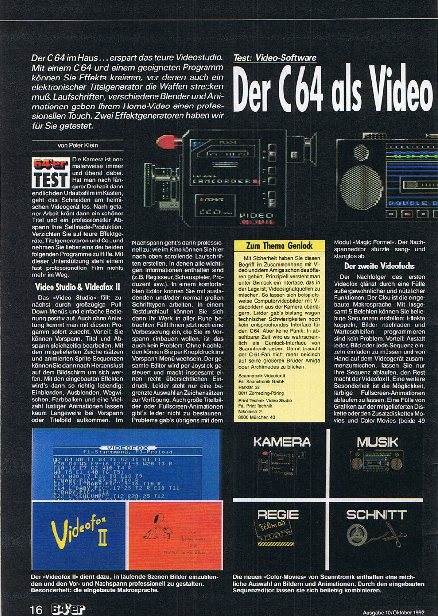 Scanntronik Videofox im Test aus der Zeitschrift 64’er