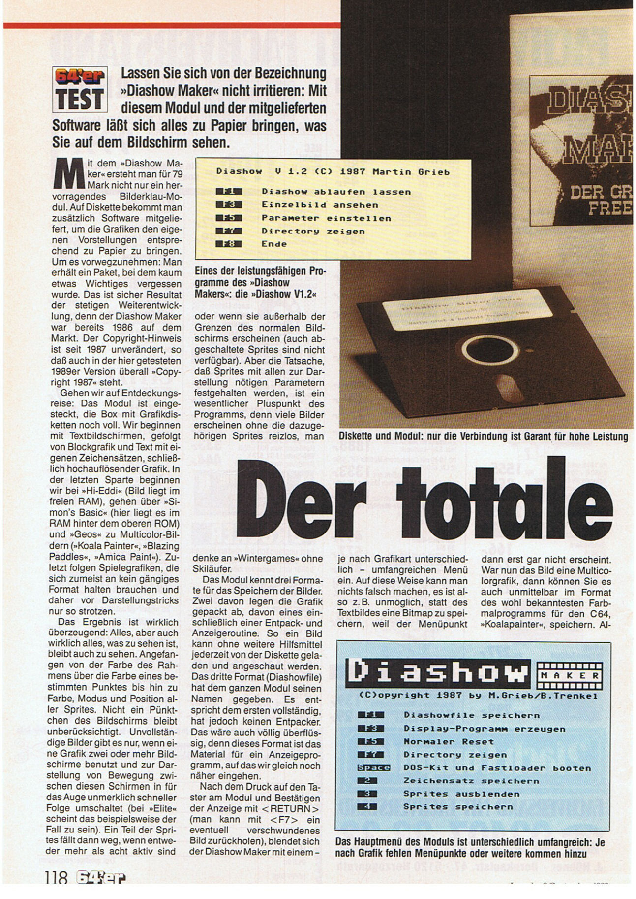 Auch Scanntronik hatte ab 1987 einen Diashowmaker für den C64/C128 im Programm. Mit dem Modul und der beiligenden Diskette lassen sich in wenigen Minuten sämtliche Bilder auf dem Bildschirm abspeichern, ausdrucken und mehrere Bilder zu einer Diashow zusammenführen. Das Modul wurde für einen Preis von 49,90 DM verkauft.