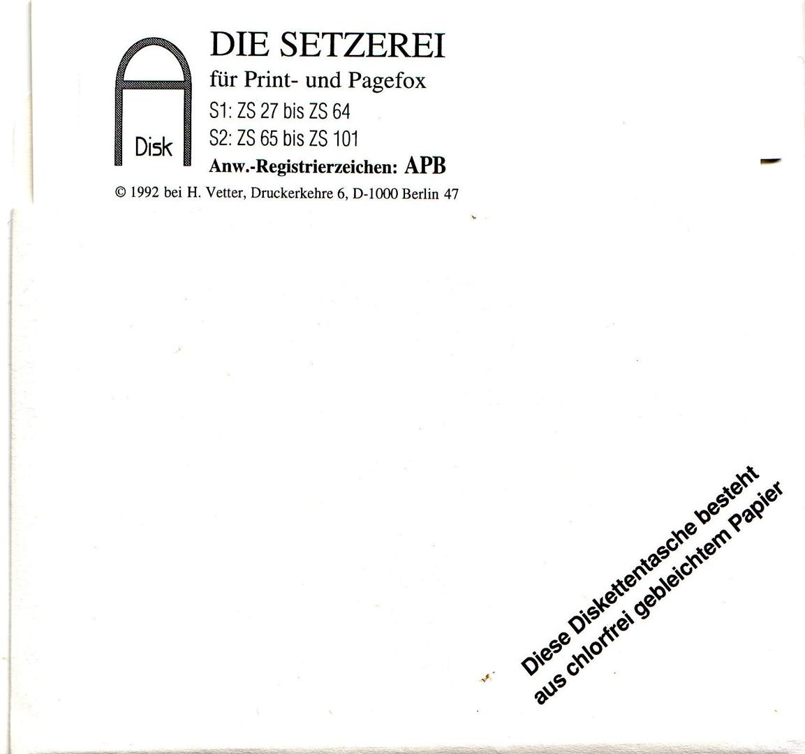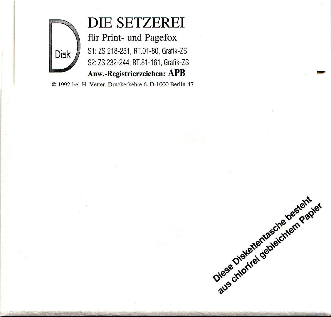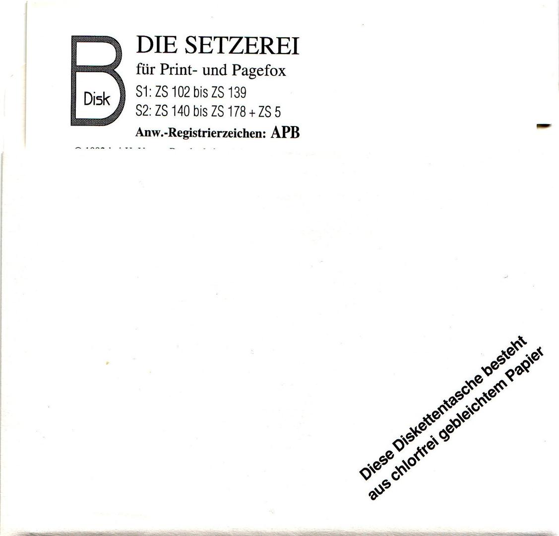 Die Zeichensatzsammlung von D. Trepkowski enthält 190 Zeichensätze für den Print- oder Pagefox. VK-Preis: 40,- DM