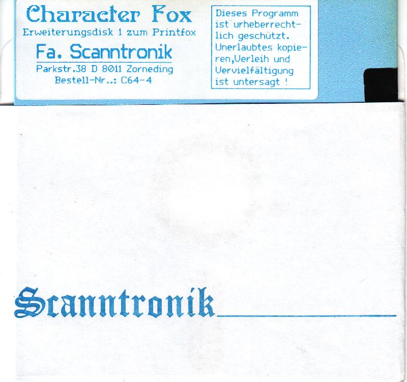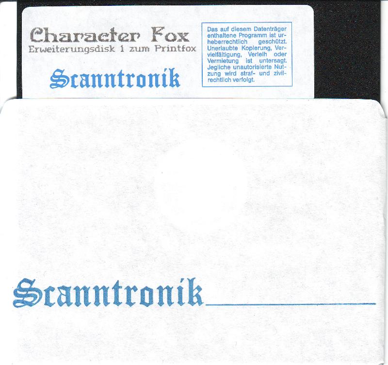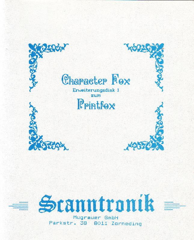 Printfox von Scanntronik für den C64/C128 besteht im wesentlichen aus zwei Programmteilen, dem Text- und dem Grafikeditor. Der gesamte Text sowie Grafiken werden schon im Programm aus Punkten zusammen gesetzt und sind somit für den Drucker perfekt zu verarbeiten. Printfox druckt Proportionalschrift, Near-Letter-Quality oder auch echte Unterlängen, deutsche und internationale Sonderzeichen und das alles auf Druckern, welche dieses alles eigentlich nicht können. Das Programm Character Fox ist die optionale Erweiterung für den Printfox. VK-Preis : 98,- DM