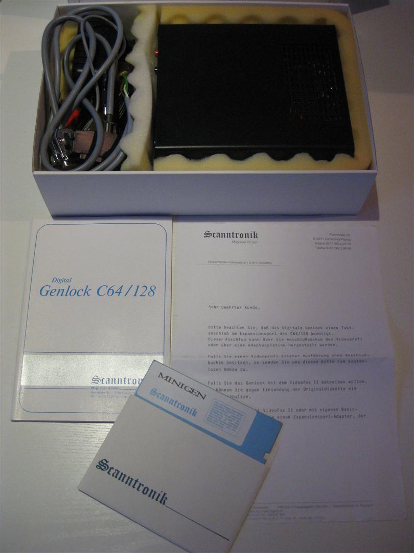 Das digitale Genlock von Scanntronik ist das weltweit einzige echte Genlock für den C64/C128. Das Genlock vermischt die Videosignale des Computers mit dem Videosignal und gibt beides an eine Aufnahmequelle aus. Der Einführungspreis lag bei 848,- DM. Das Genlock hat diverse Anschluss- und Einstellmöglichkeiten und wurde mit C64/C128 Kabel, Monitorkabel und Steuerkabel für den Videoprofi geliefert. Angesteuert wird das Genlock über das Programm Minigen.