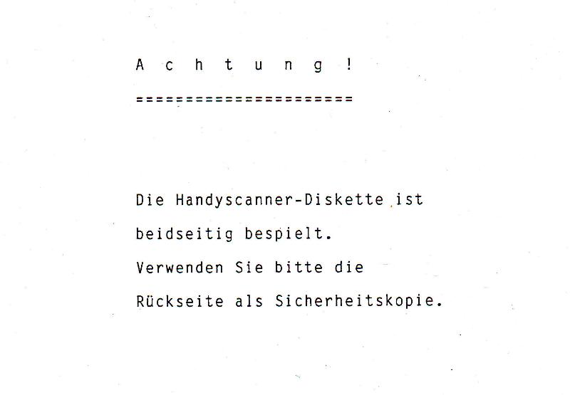 Der Handyscanner 64 vereint modernste Technologie mit höchstem Komfort. Drei verschiedene Methoden der Graustufenverarbeitung, separate Helligkeits- und Kontrastregler, höchste Auflösung durch 400dpi Technik. Das Pagefox Modul kann als zusätzlicher Speicher verwendet werden, somit steht dann ein Grafikspeicher von 640×800 Punkten zur Verfügung. VK-Preis : 498,- DM