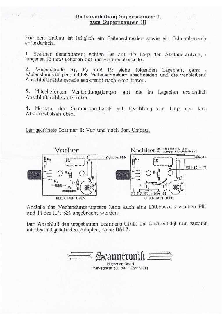 Der Scanntronik Superscanner II läßt sich mit wenigen Handgriffen in den Superscanner III verwandeln. Der Preis für dieses Update betrug 99,- DM.