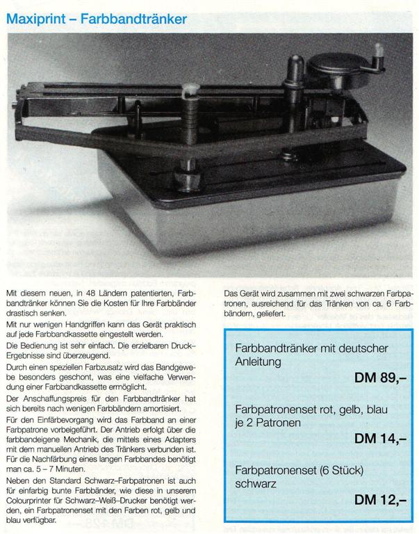 Das Maxiprint System ist ein Patent der Firma Innovasia Pre Ltd. Mit dem Maxiprint können Farbbänder von jedem Drucker neu getränkt werden. Scanntronik hatte ein exklusives Verkaufsrecht in Deutschland. Das Grundgerät wurde für einen Preis von 89,- DM verkauft.
