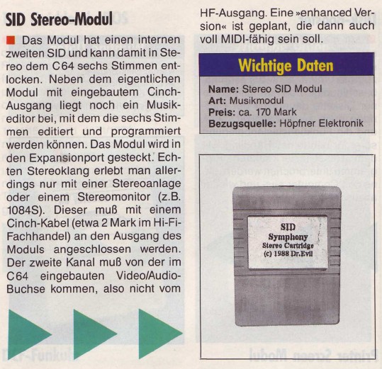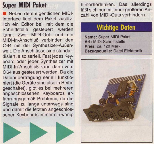 Das MIdi Interface für den C64/C128 von Roßmöller war für einen Preis von 39,95 DM erhältlich und ist voll kompatibel mit C-Lab, Steinberg, Korg und Jellinghaus.