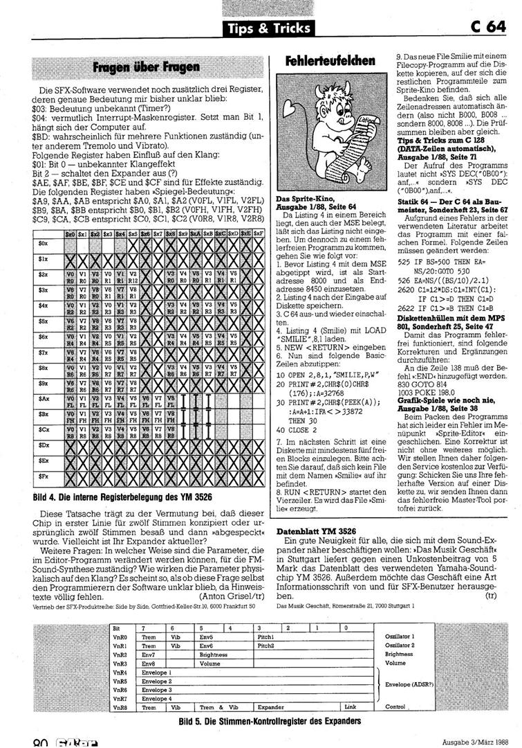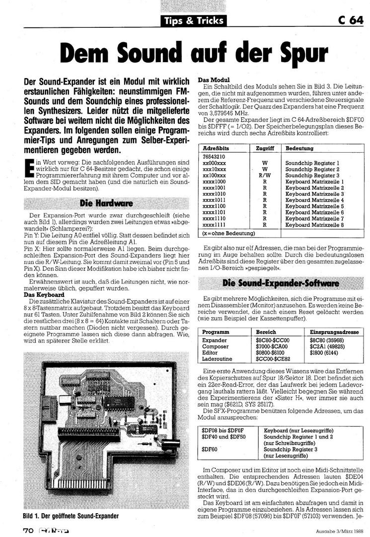 Auf der Sound-Expander Diskette gibt es eine versteckte Datei. Auf Track 18 / Sektor 1 gibt es eine versteckte Botschaft. Es ist der folgende Hinweis zu finden „look at track 26 sector 2“. Die Datei kann in den Basic-Speicher ab $C000 geladen und gestartet werden (SYS 49152). Mit DIESEM kurzen Programm kann das Ganze automatisch ausgeführt werden.