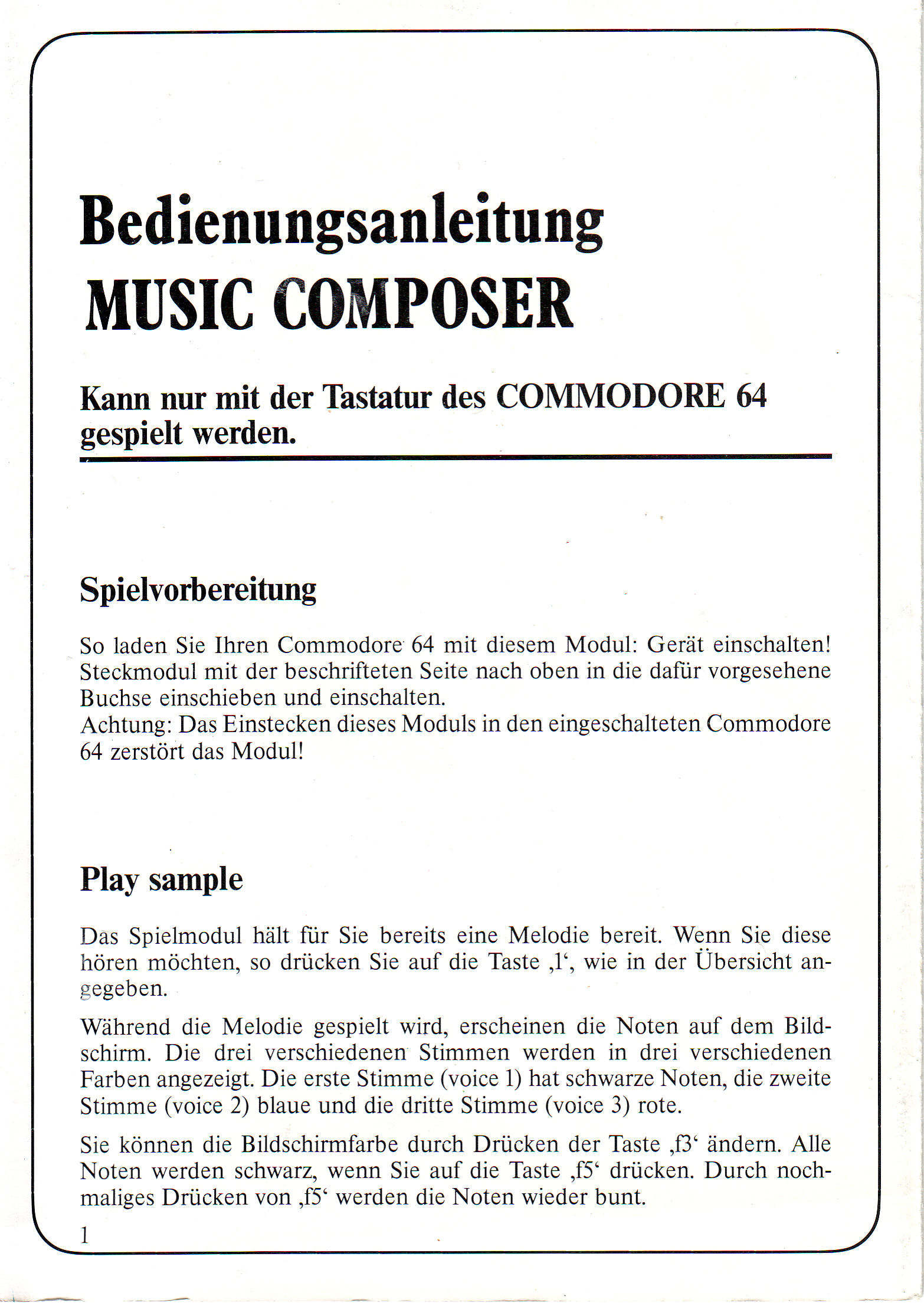 Der Music Composer wurde 1983 von Commodore auf Modul auf den Markt gebracht.