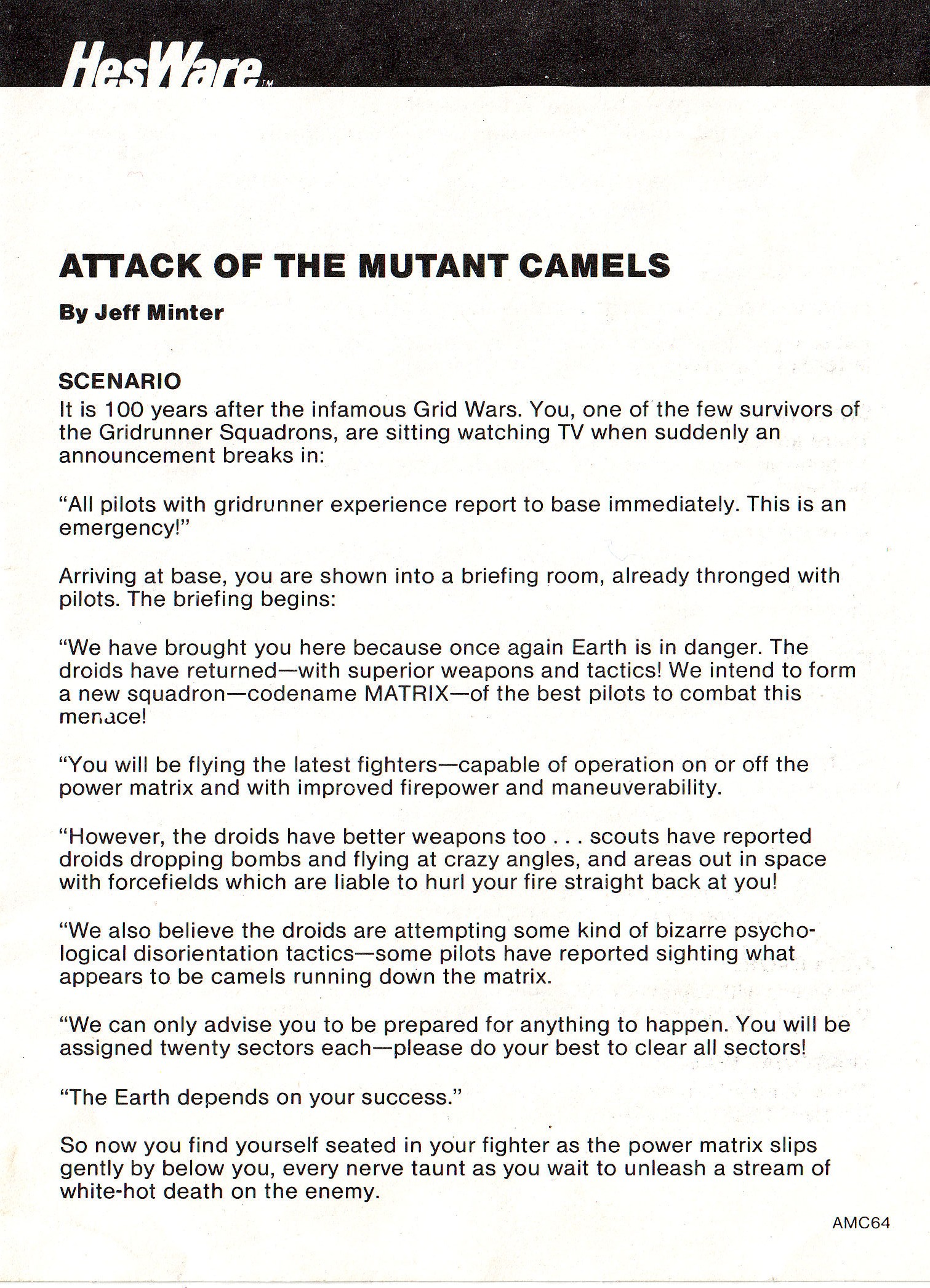 Gridrunner II – Attack Of The Mutant Camels (1984)(HesWare)
